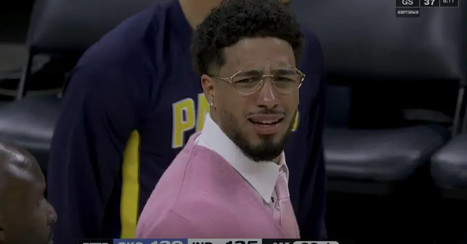 即将要完成轻松上篮时V交易网,裁判响哨表示雷霆队已经提前叫了暂停,这次抢断无效,比赛也就此失去悬念,场边的哈利伯顿只能无奈苦笑。