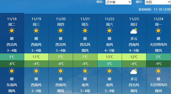 未来六天,在持续的晴好天气下,北方大部将转为整体偏暖的天气格局。预计明天,长江中下游以北大部将继续升温,东北、华北等地部分地区升温幅度可达4至10℃,多地的最高气温开始转为较常年同期偏高。22日至23日,东北和华北部分地区最高气温偏高幅度可达10℃左右钱盈配,例如沈阳,最高气温可达13℃,较常年同期的2.1℃大幅偏高。