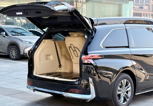 作为一台MPV,空间的灵活度是核心指标。赛那·皇家一号的第三排座椅支持一键电动翻折,可完全隐藏至地板下方,使后备箱容积从525L扩展至惊人的2114L,轻松容纳高尔夫球包、行李箱等大件物品。