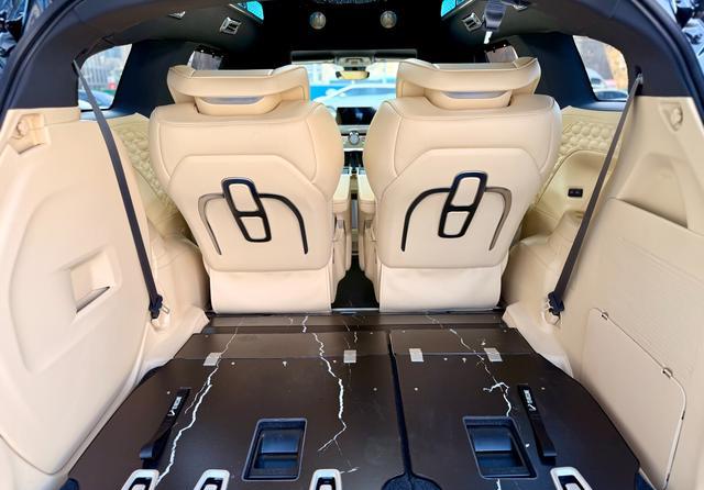 ? 航空级总裁座椅:后排两张独立座椅是全车的精髓,具备通风、加热、按摩、180°电动平躺等十余项调节功能,搭配可升降的航空头枕和腿托,让每一次长途出行都成为享受。